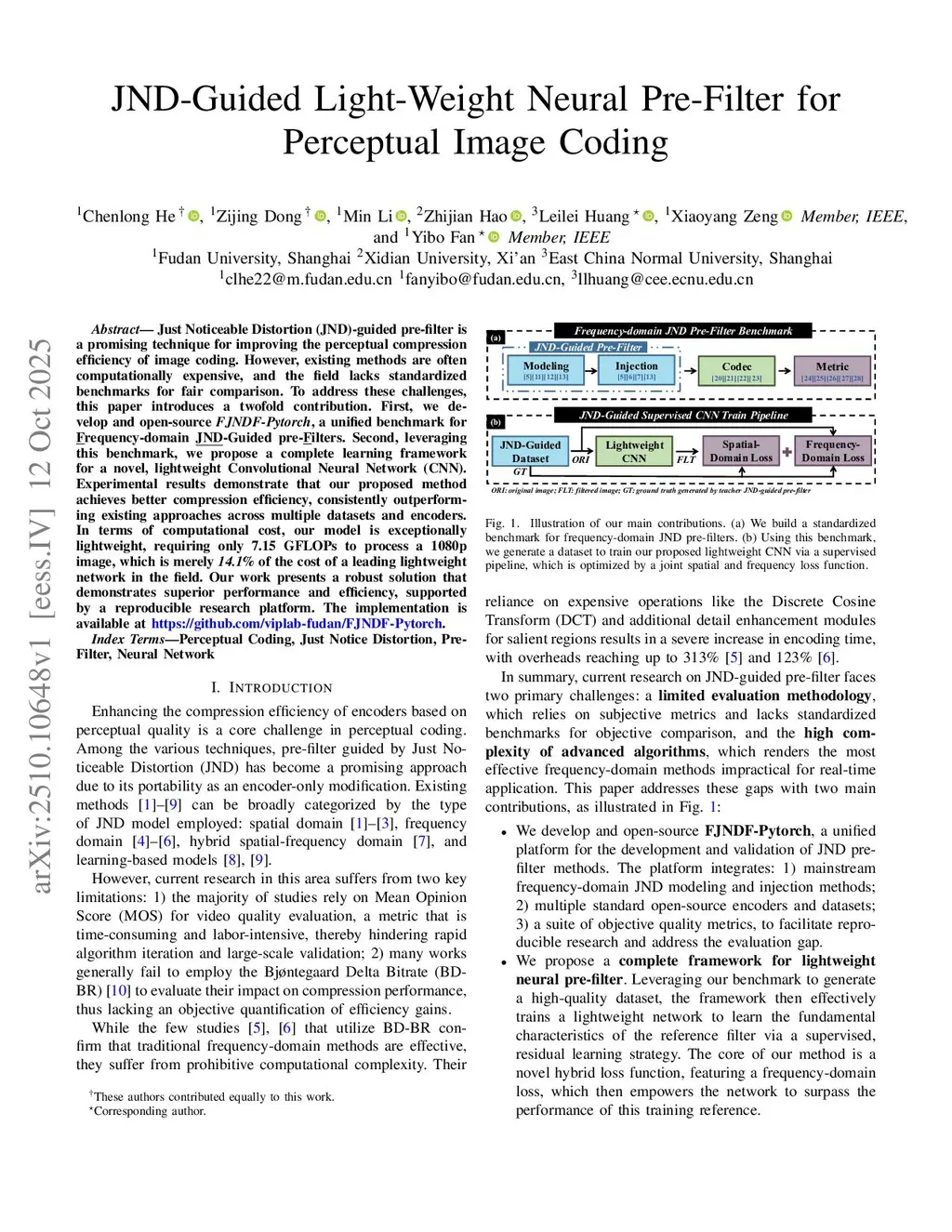 Just Noticeable Distortion (JND)-guided pre-filter is a promising technique for improving the perceptual compression efficiency of image coding. However, existing methods are often computationally expensive, and the field lacks standardized benchmarks for fair comparison. To address these challenges, this paper introduces a twofold contribution. First, we develop and open-source FJNDF-Pytorch, a unified benchmark for frequency-domain JND-Guided pre-filters. Second, leveraging this platform, we propose a complete learning framework for a novel, lightweight Convolutional Neural Network (CNN). Experimental results demonstrate that our proposed method achieves state-of-the-art compression efficiency, consistently outperforming competitors across multiple datasets and encoders. In terms of computational cost, our model is exceptionally lightweight, requiring only 7.15 GFLOPs to process a 1080p image, which is merely 14.1% of the cost of recent lightweight network. Our work presents a robust, state-of-the-art solution that excels in both performance and efficiency, supported by a reproducible research platform. The open-source implementation is available atthis https URL.