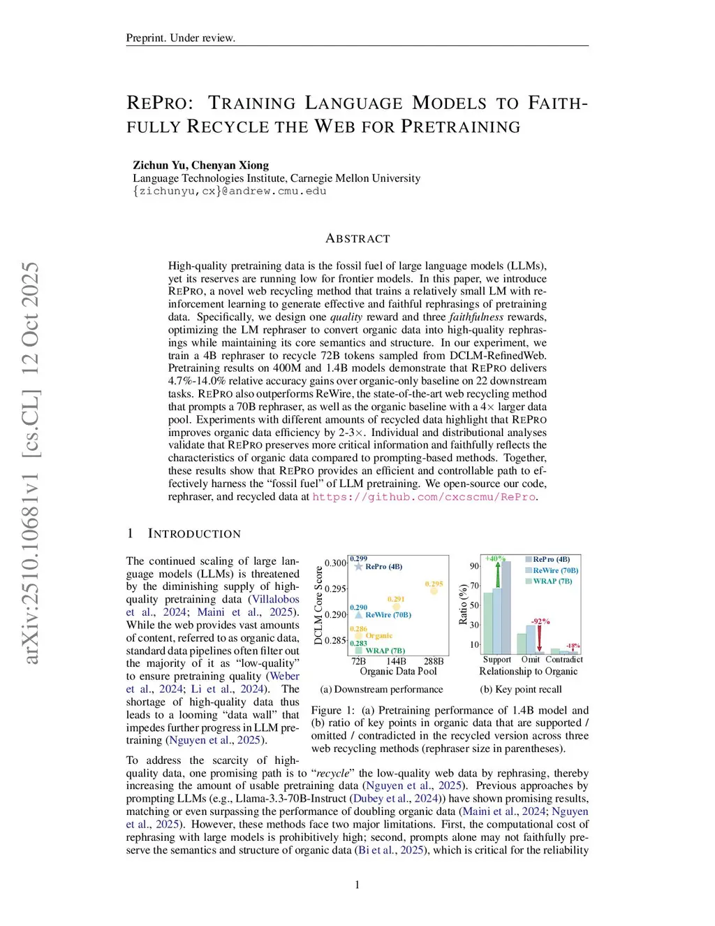RePro: Training Language Models to Faithfully Recycle the Web for Pretraining