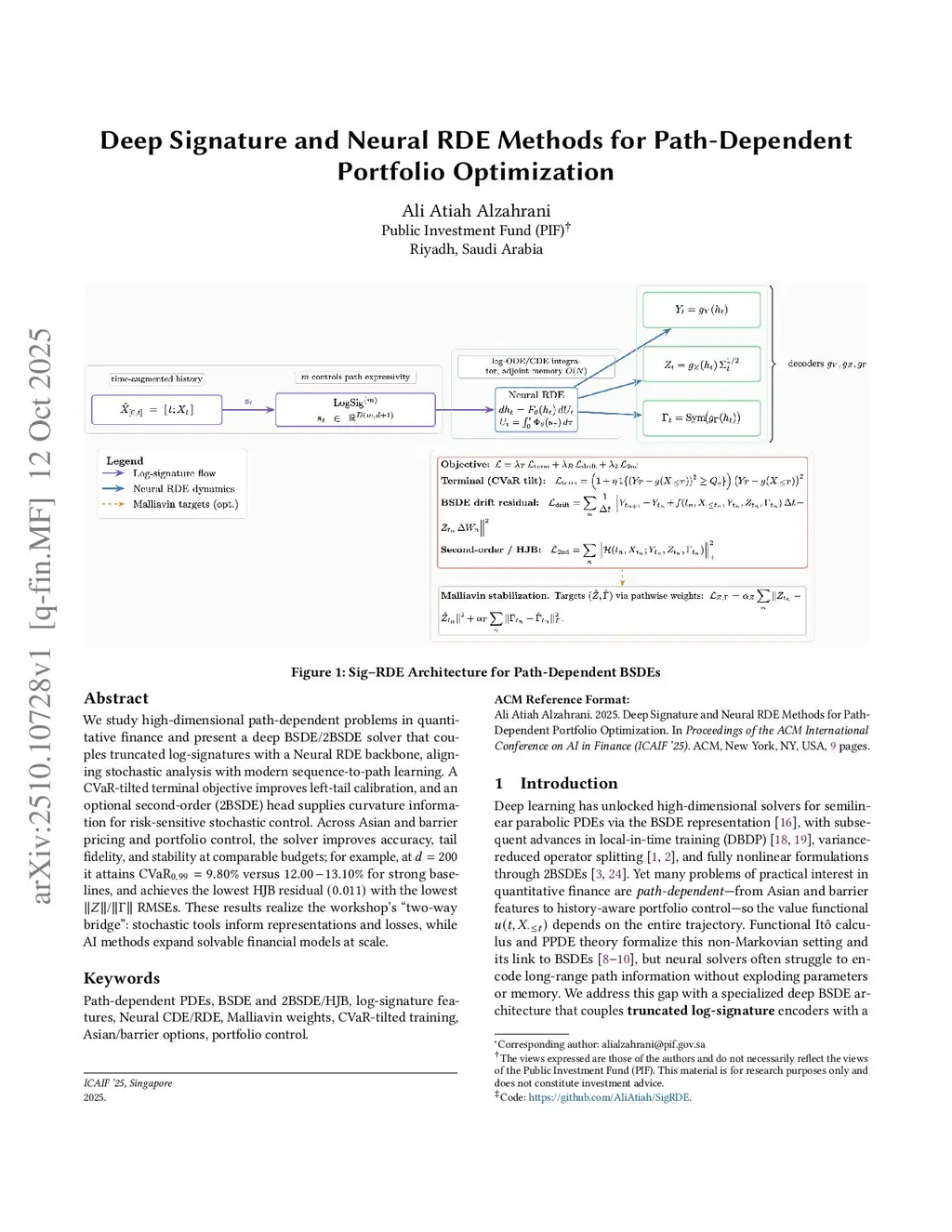 We tackle high-dimensional, path-dependent valuation and control and introduce a deep BSDE/2BSDE solver that couples truncated log-signatures with a neural rough differential equation (RDE) backbone. The architecture aligns stochastic analysis with sequence-to-path learning: a CVaR-tilted terminal objective targets left-tail risk, while an optional second-order (2BSDE) head supplies curvature estimates for risk-sensitive control. Under matched compute and parameter budgets, the method improves accuracy, tail fidelity, and training stability across Asian and barrier option pricing and portfolio control: at d=200 it achieves CVaR(0.99)=9.80% versus 12.00-13.10% for strong baselines, attains the lowest HJB residual (0.011), and yields the lowest RMSEs for Z and Gamma. Ablations over truncation depth, local windows, and tilt parameters confirm complementary gains from the sequence-to-path representation and the 2BSDE head. Taken together, the results highlight a bidirectional dialogue between stochastic analysis and modern deep learning: stochastic tools inform representations and objectives, while sequence-to-path models expand the class of solvable financial models at scale.
