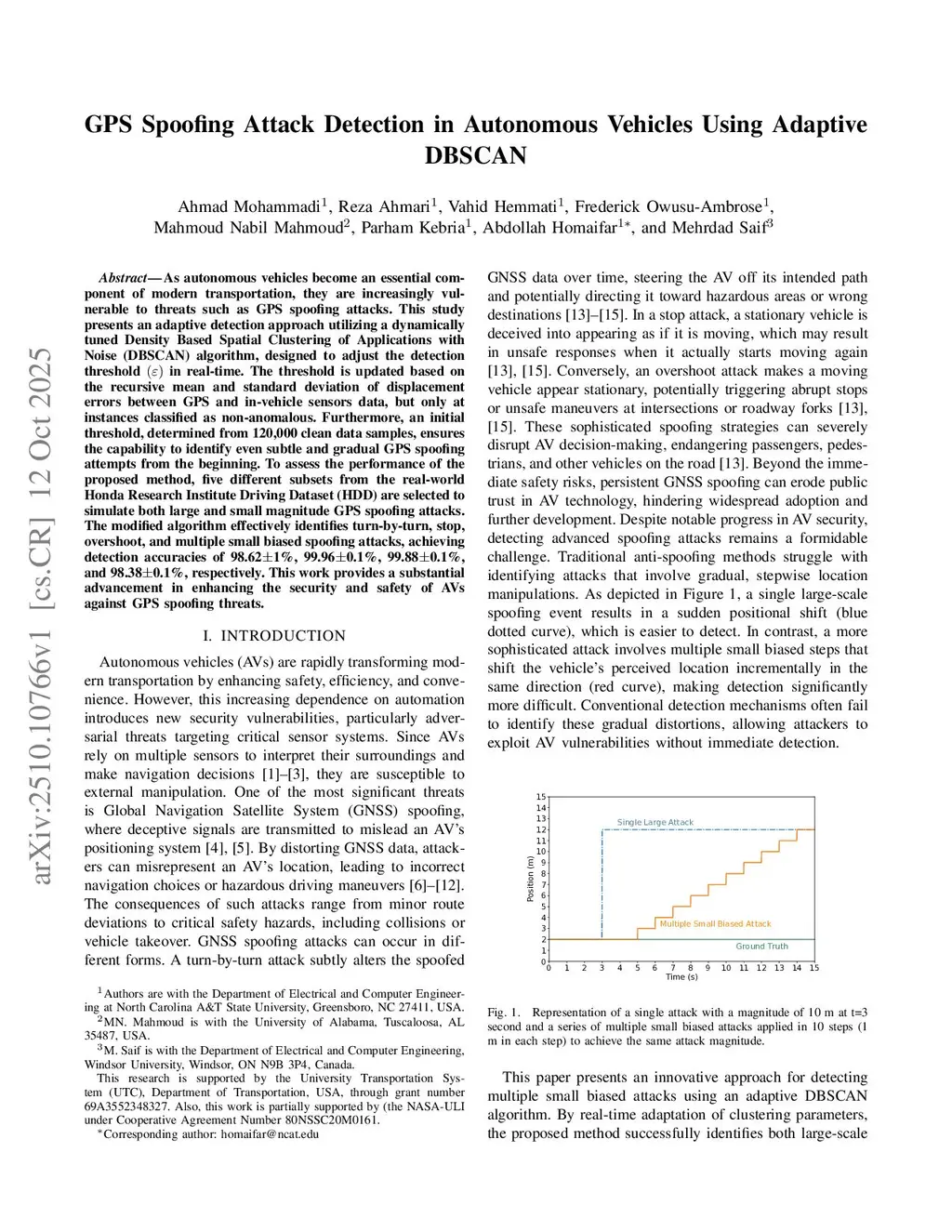 GPS Spoofing Attack Detection in Autonomous Vehicles Using Adaptive DBSCAN