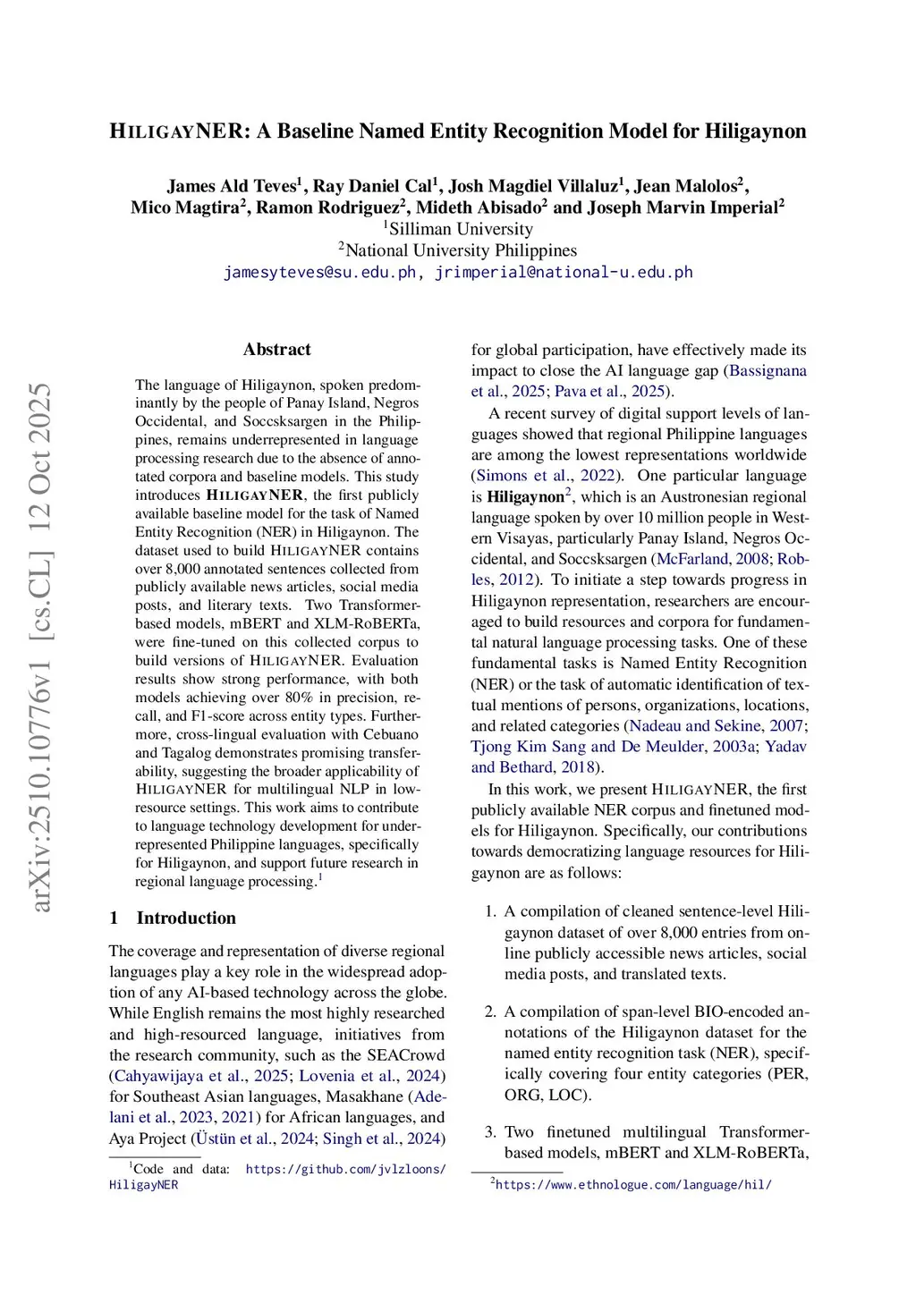 HiligayNER: A Baseline Named Entity Recognition Model for Hiligaynon