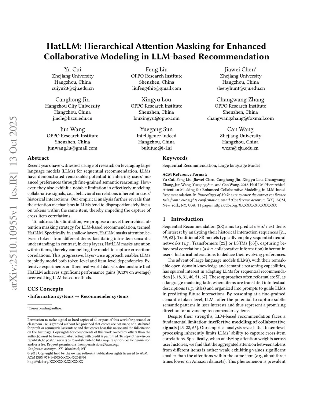 HatLLM: Hierarchical Attention Masking for Enhanced Collaborative Modeling in LLM-based Recommendation
