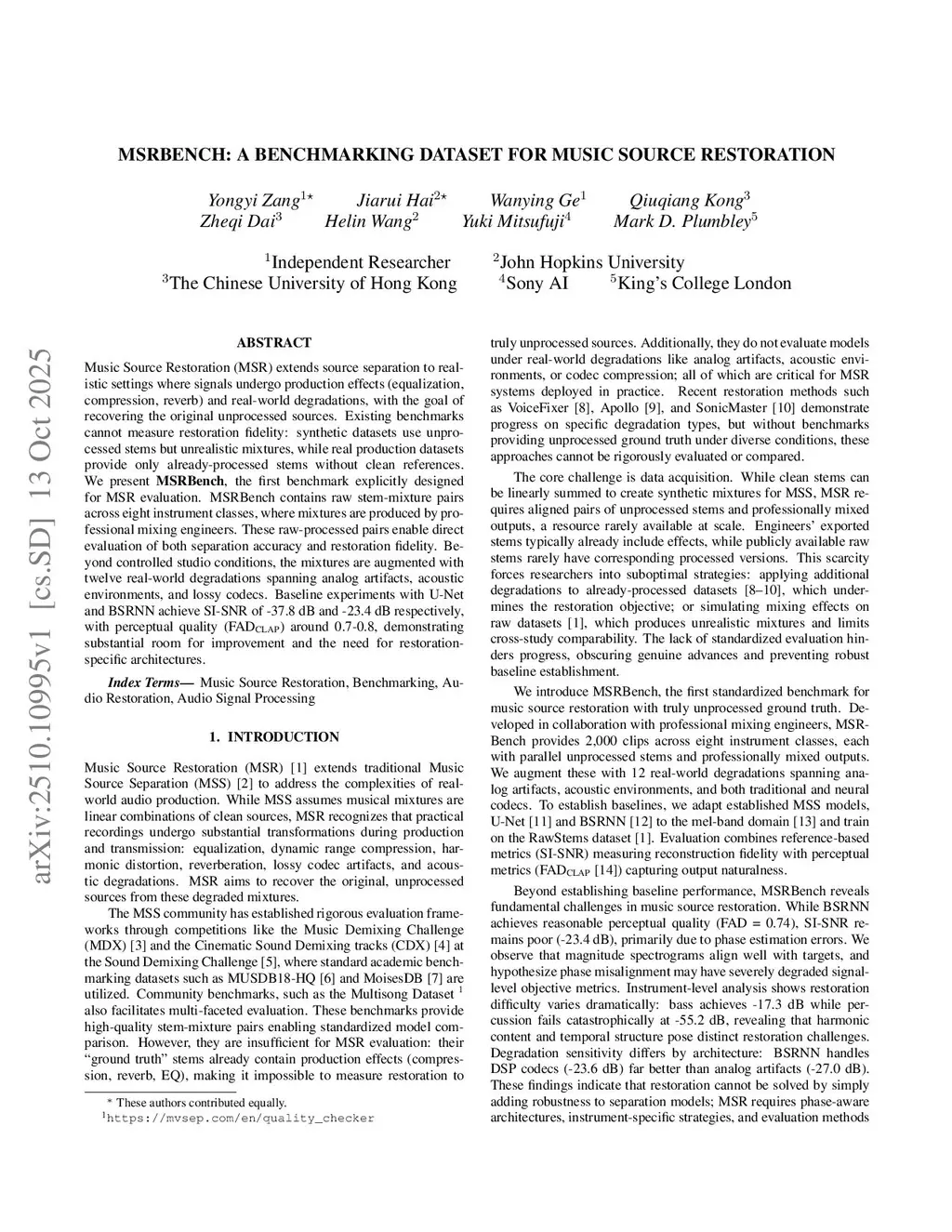 MSRBench: A Benchmarking Dataset for Music Source Restoration