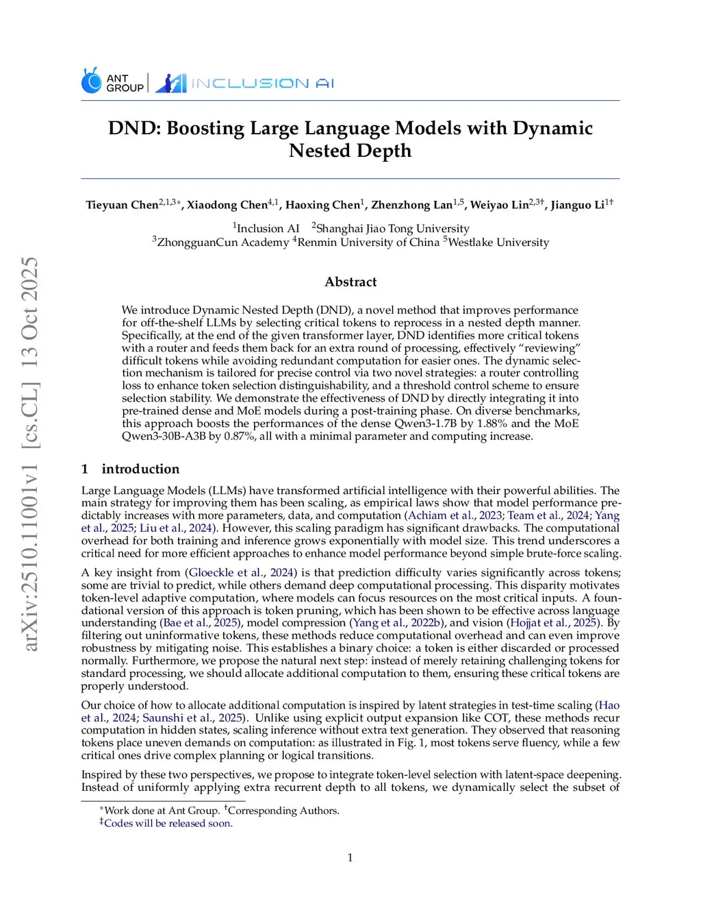 DND: Boosting Large Language Models with Dynamic Nested Depth