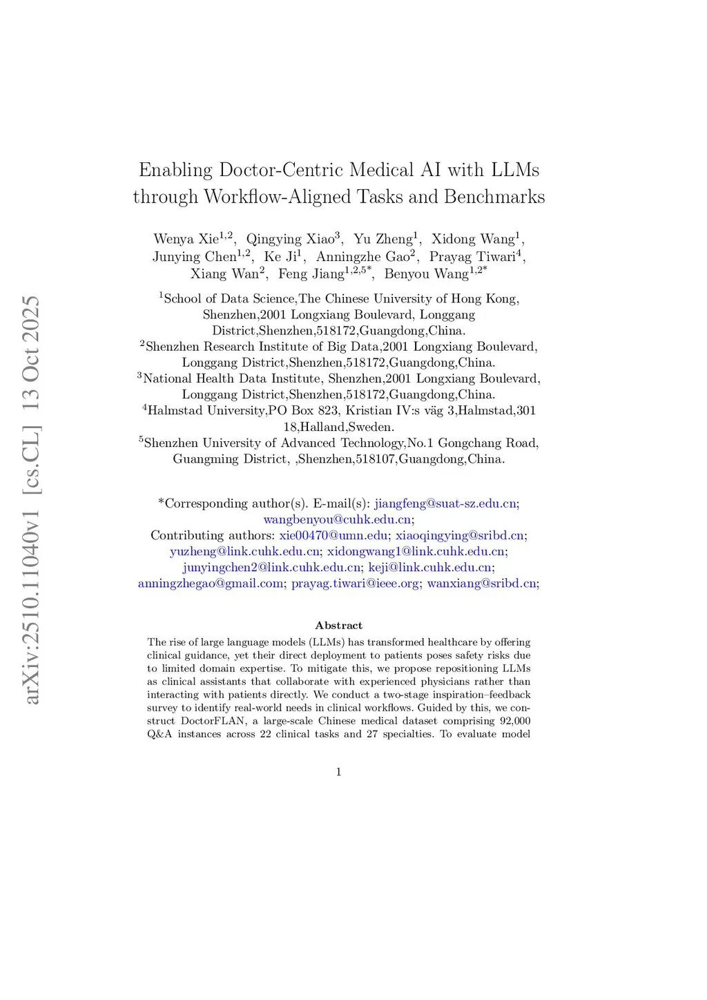 Enabling Doctor-Centric Medical AI with LLMs through Workflow-Aligned Tasks and Benchmarks