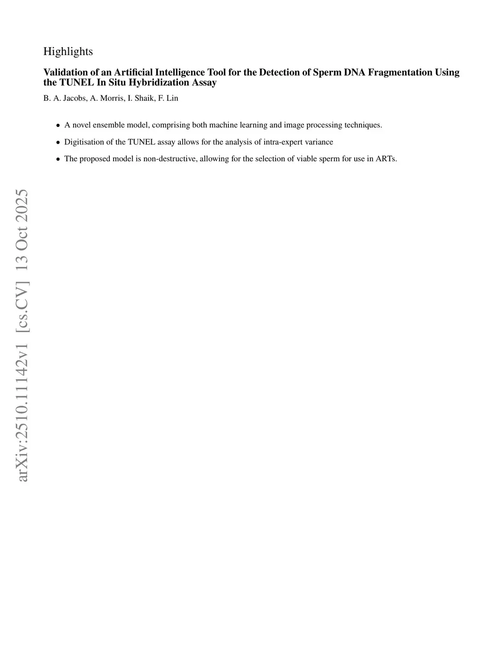 Validation of an Artificial Intelligence Tool for the Detection of Sperm DNA Fragmentation Using the TUNEL In Situ Hybridization Assay