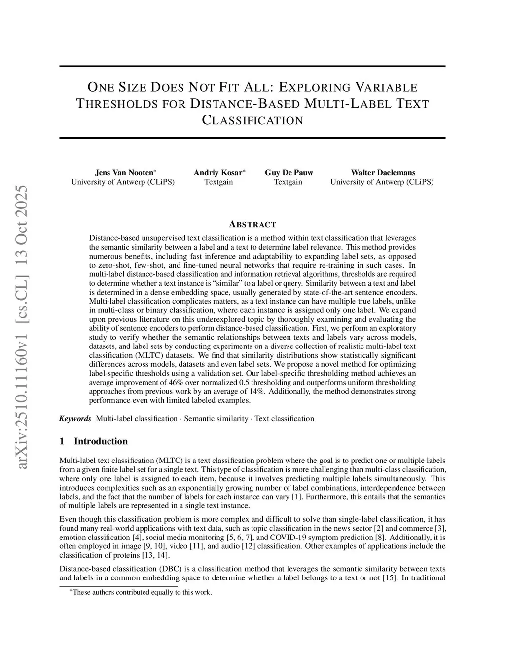 One Size Does Not Fit All: Exploring Variable Thresholds for Distance-Based Multi-Label Text Classification