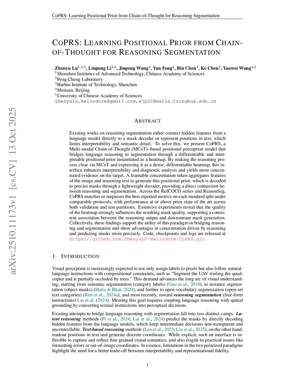 CoPRS: Learning Positional Prior from Chain-of-Thought for Reasoning Segmentation