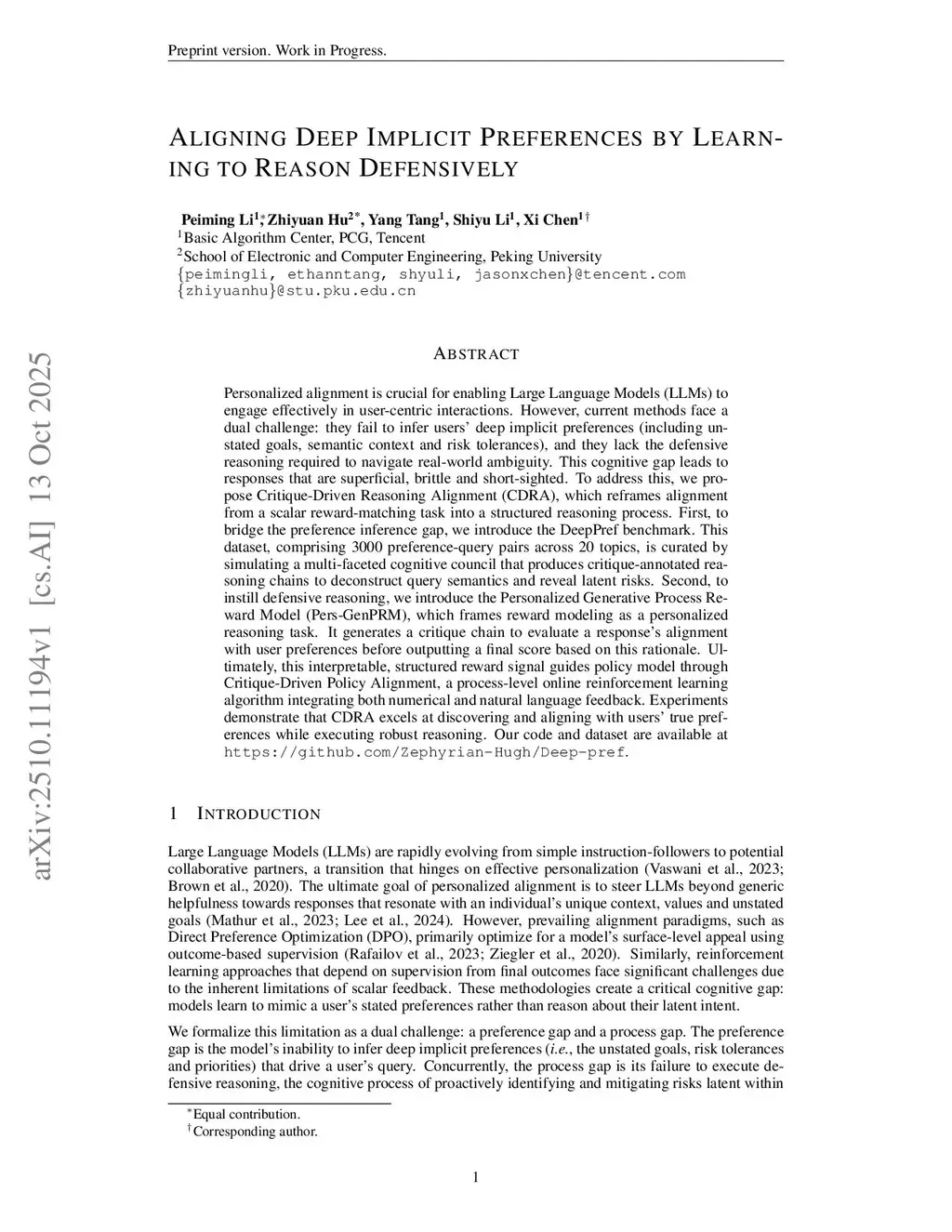 Aligning Deep Implicit Preferences by Learning to Reason Defensively