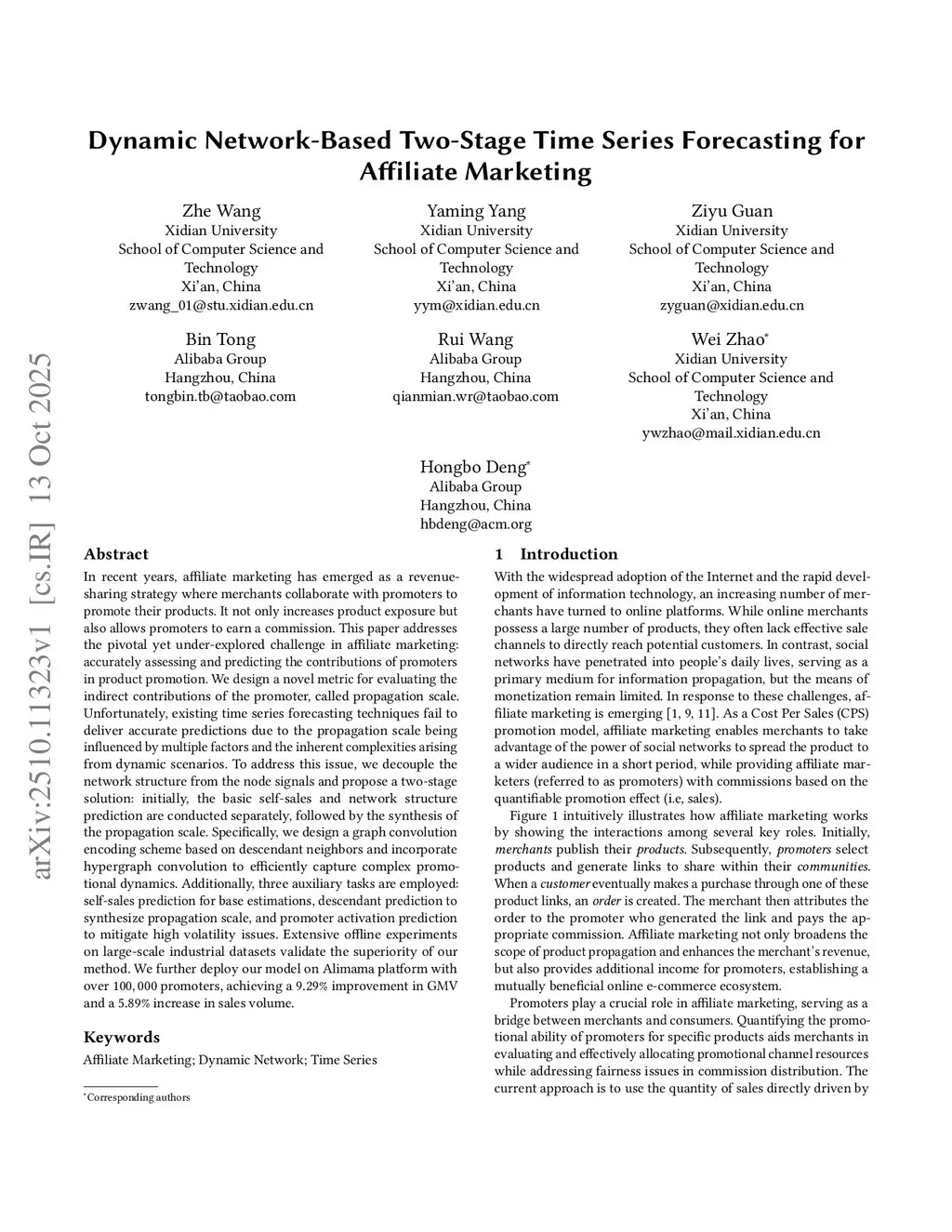 Dynamic Network-Based Two-Stage Time Series Forecasting for Affiliate Marketing