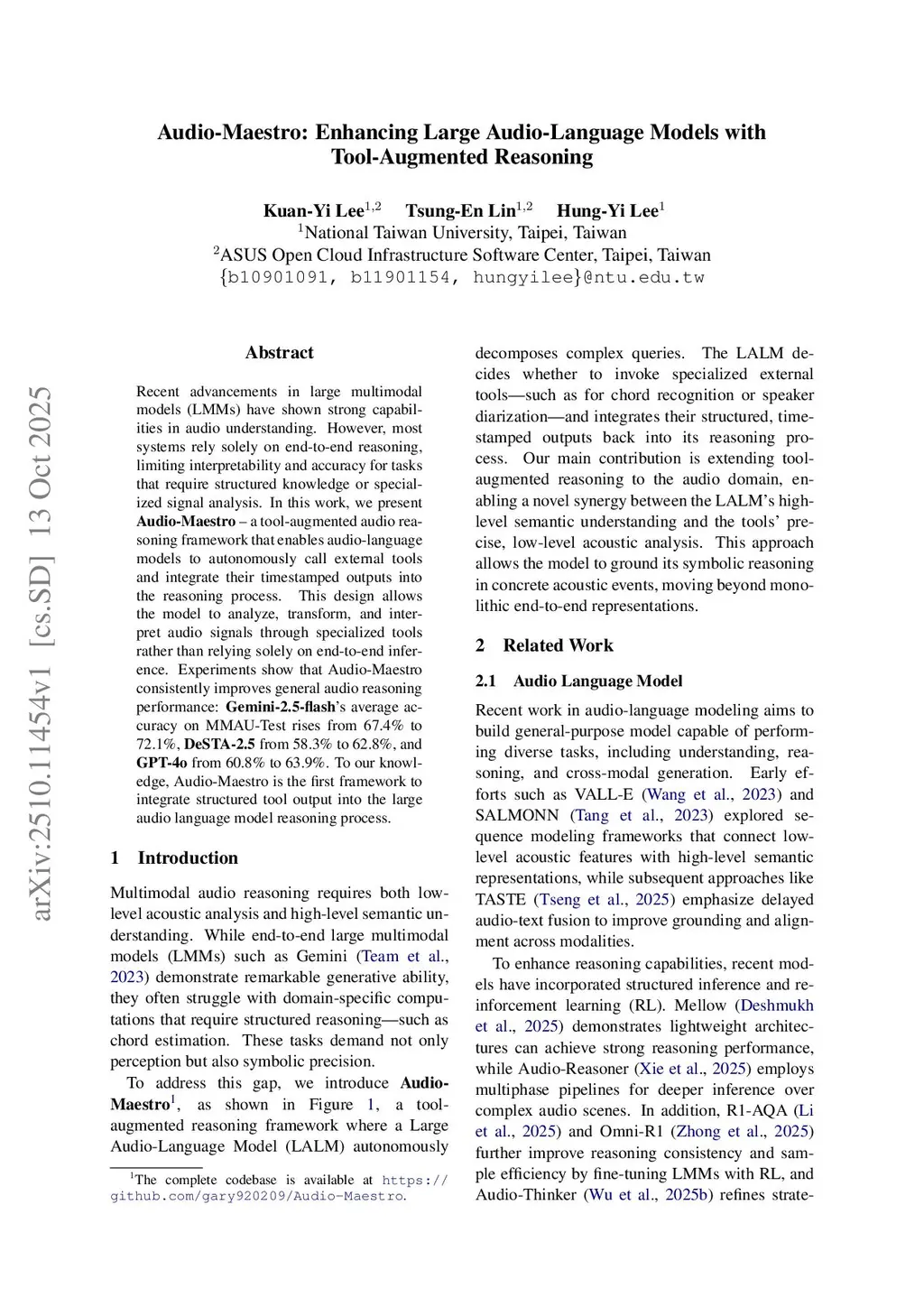 Recent advancements in large multimodal models (LMMs) have shown strong capabilities in audio understanding. However, most systems rely solely on end-to-end reasoning, limiting interpretability and accuracy for tasks that require structured knowledge or specialized signal analysis. In this work, we present Audio-Maestro -- a tool-augmented audio reasoning framework that enables audio-language models to autonomously call external tools and integrate their timestamped outputs into the reasoning process. This design allows the model to analyze, transform, and interpret audio signals through specialized tools rather than relying solely on end-to-end inference. Experiments show that Audio-Maestro consistently improves general audio reasoning performance: Gemini-2.5-flash's average accuracy on MMAU-Test rises from 67.4% to 72.1%, DeSTA-2.5 from 58.3% to 62.8%, and GPT-4o from 60.8% to 63.9%. To our knowledge, Audio-Maestro is the first framework to integrate structured tool output into the large audio language model reasoning process.