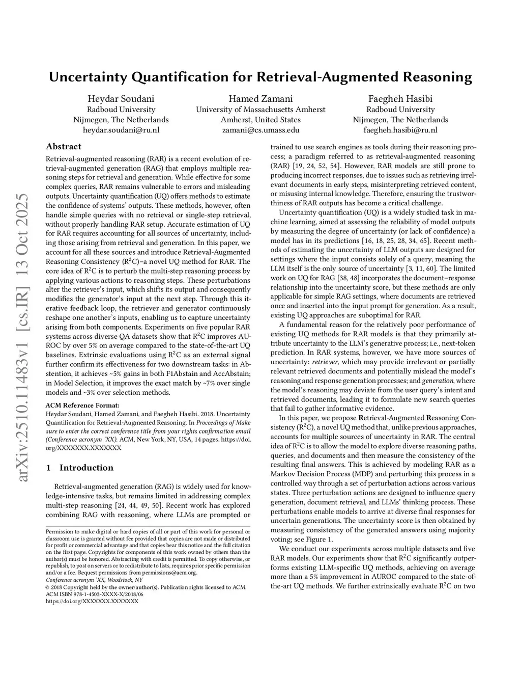 Uncertainty Quantification for Retrieval-Augmented Reasoning