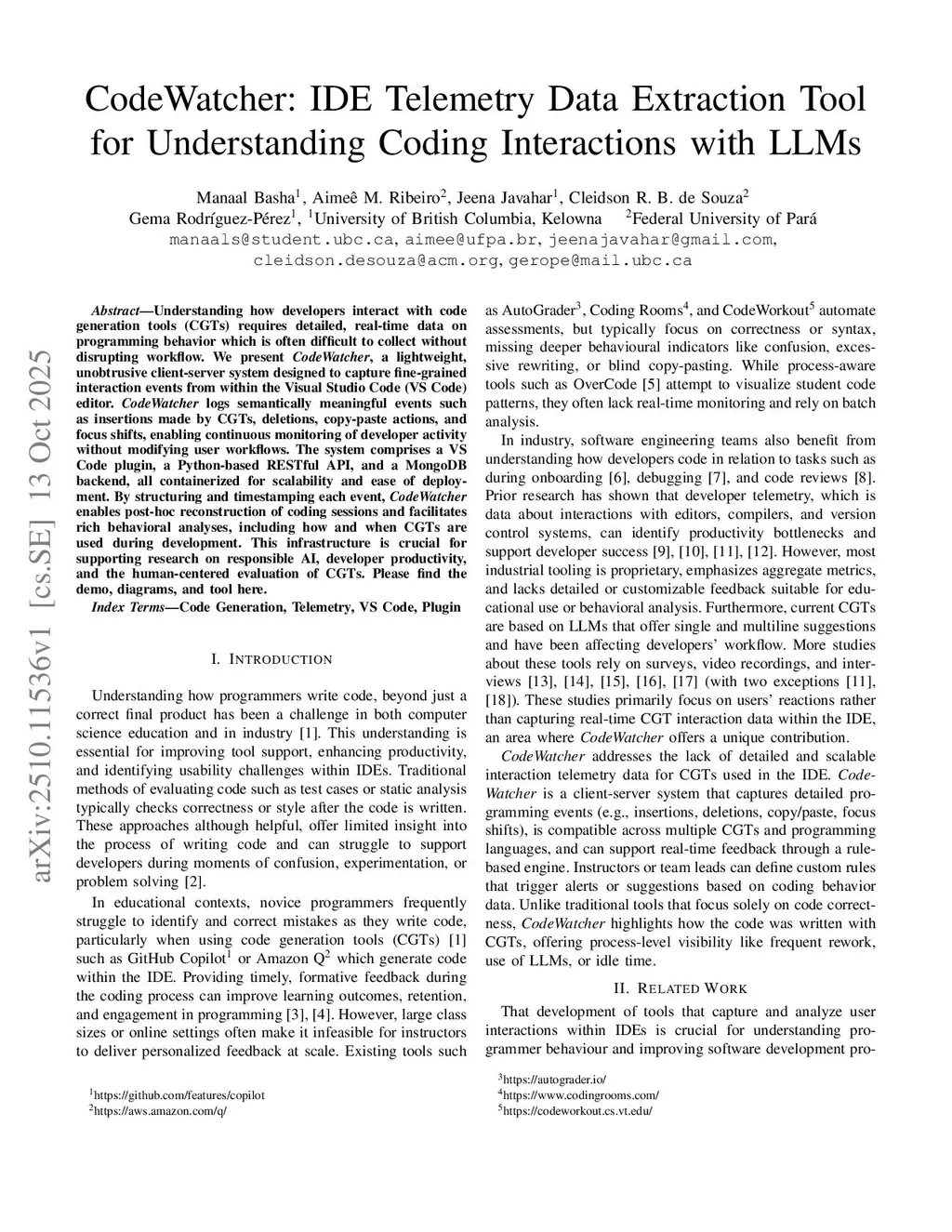 CodeWatcher: IDE Telemetry Data Extraction Tool for Understanding Coding Interactions with LLMs