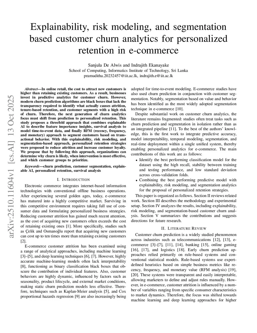 Explainability, risk modeling, and segmentation based customer churn analytics for personalized retention in e-commerce