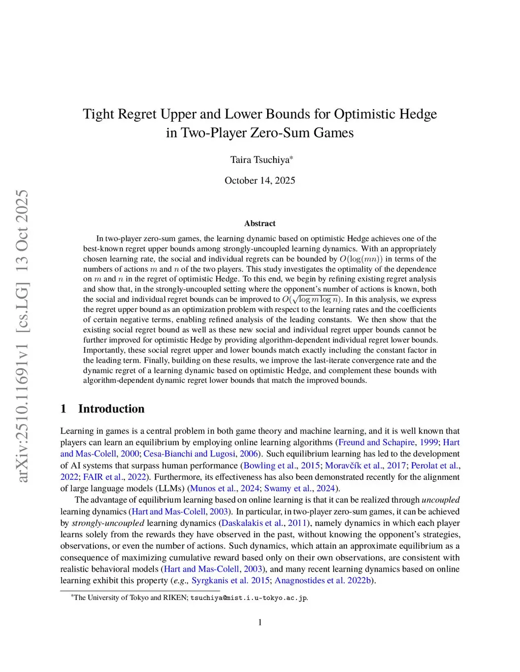 Tight Regret Upper and Lower Bounds for Optimistic Hedge in Two-Player Zero-Sum Games