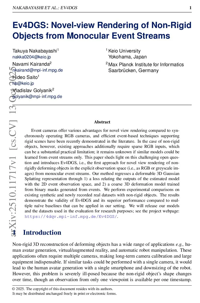 Ev4DGS: Novel-view Rendering of Non-Rigid Objects from Monocular Event Streams