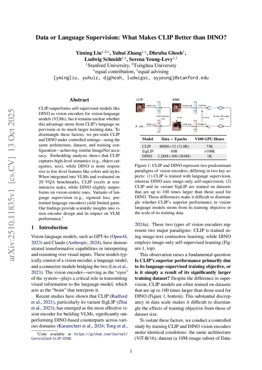Data or Language Supervision: What Makes CLIP Better than DINO?