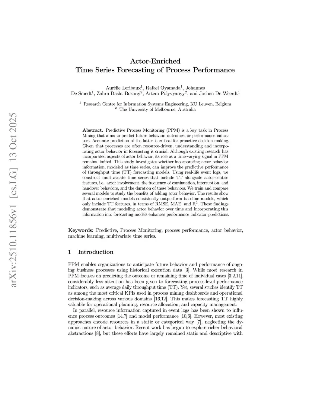Actor-Enriched Time Series Forecasting of Process Performance