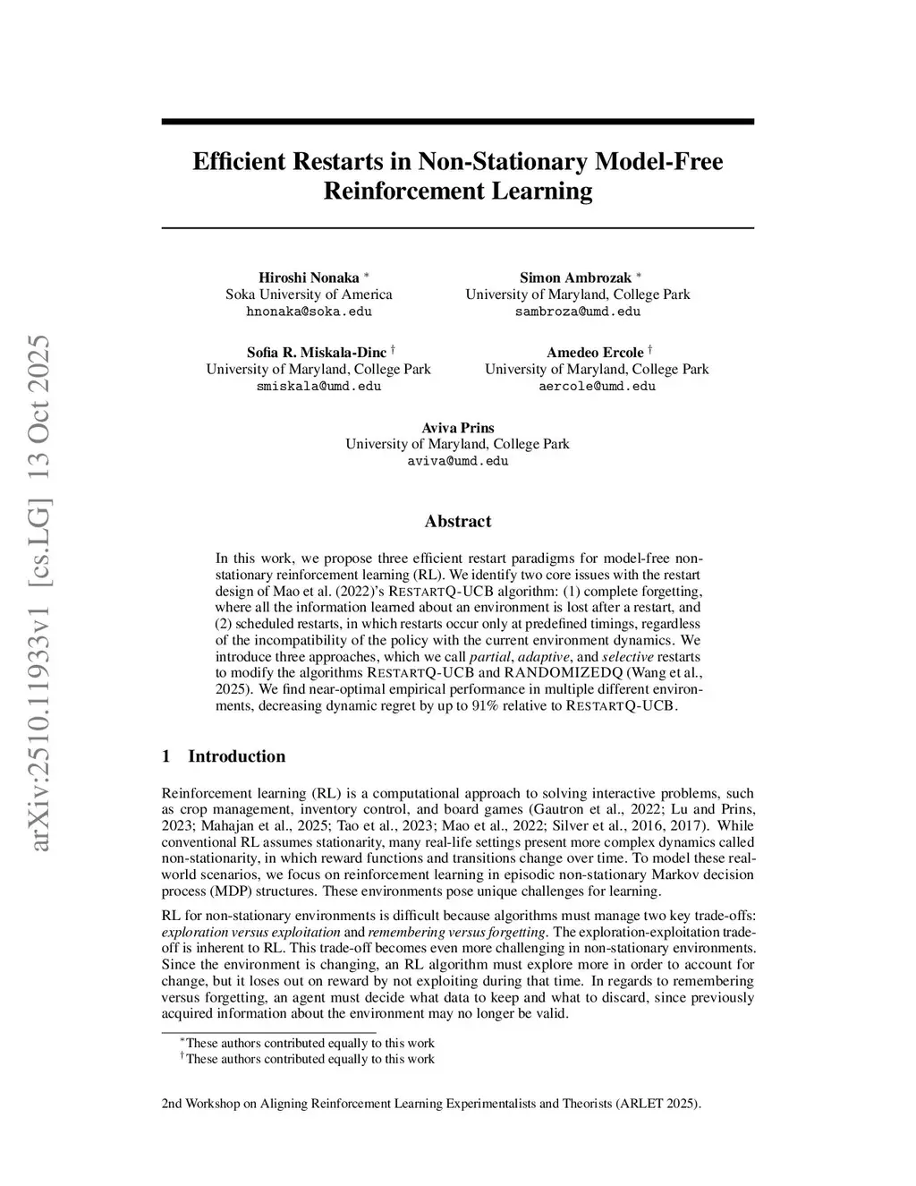 In this work, we propose three efficient restart paradigms for model-free non-stationary reinforcement learning (RL). We identify two core issues with the restart design of Mao et al. (2022)'s RestartQ-UCB algorithm: (1) complete forgetting, where all the information learned about an environment is lost after a restart, and (2) scheduled restarts, in which restarts occur only at predefined timings, regardless of the incompatibility of the policy with the current environment dynamics. We introduce three approaches, which we call partial, adaptive, and selective restarts to modify the algorithms RestartQ-UCB and RANDOMIZEDQ (Wang et al., 2025). We find near-optimal empirical performance in multiple different environments, decreasing dynamic regret by up to % relative to RestartQ-UCB.
