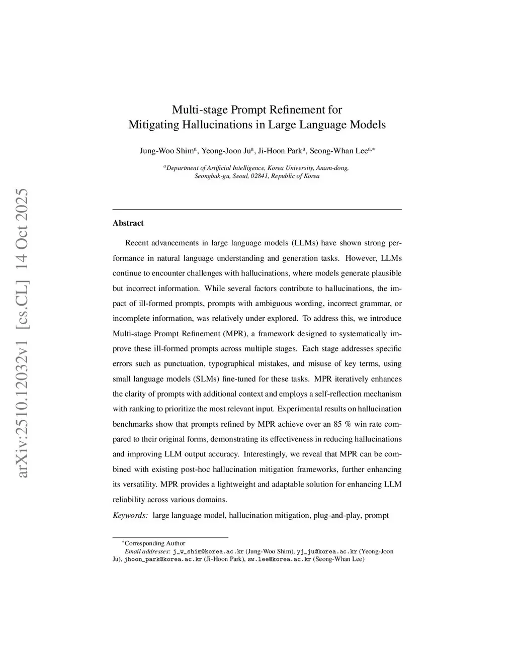 Multi-stage Prompt Refinement for Mitigating Hallucinations in Large Language Models
