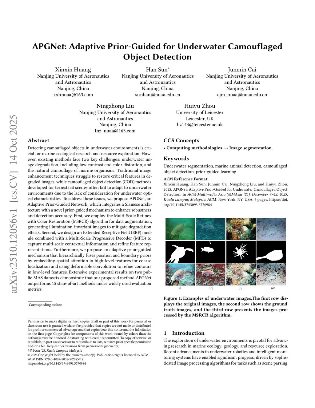 APGNet: Adaptive Prior-Guided for Underwater Camouflaged Object Detection