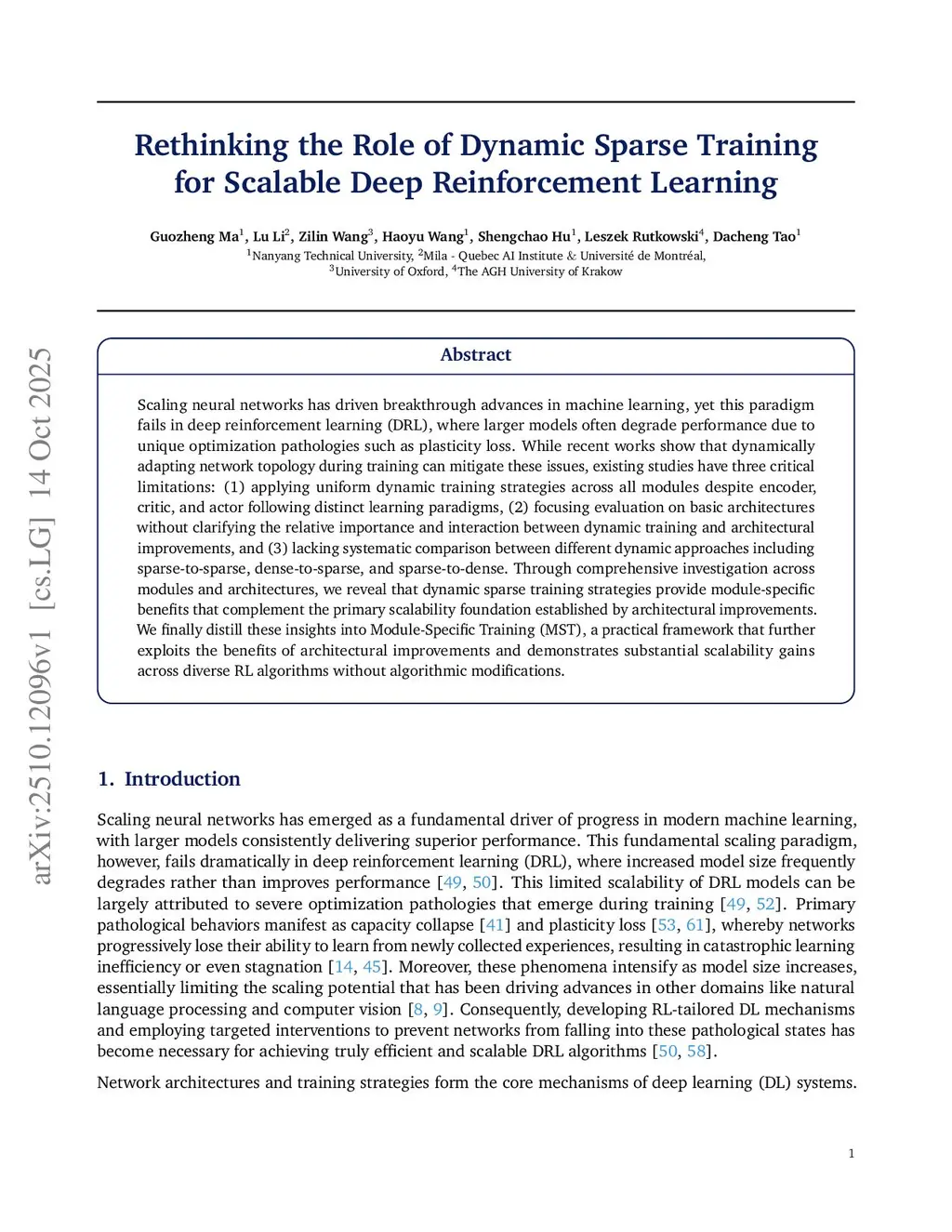 Scaling neural networks has driven breakthrough advances in machine learning, yet this paradigm fails in deep reinforcement learning (DRL), where larger models often degrade performance due to unique optimization pathologies such as plasticity loss. While recent works show that dynamically adapting network topology during training can mitigate these issues, existing studies have three critical limitations: (1) applying uniform dynamic training strategies across all modules despite encoder, critic, and actor following distinct learning paradigms, (2) focusing evaluation on basic architectures without clarifying the relative importance and interaction between dynamic training and architectural improvements, and (3) lacking systematic comparison between different dynamic approaches including sparse-to-sparse, dense-to-sparse, and sparse-to-dense. Through comprehensive investigation across modules and architectures, we reveal that dynamic sparse training strategies provide module-specific benefits that complement the primary scalability foundation established by architectural improvements. We finally distill these insights into Module-Specific Training (MST), a practical framework that further exploits the benefits of architectural improvements and demonstrates substantial scalability gains across diverse RL algorithms without algorithmic modifications.