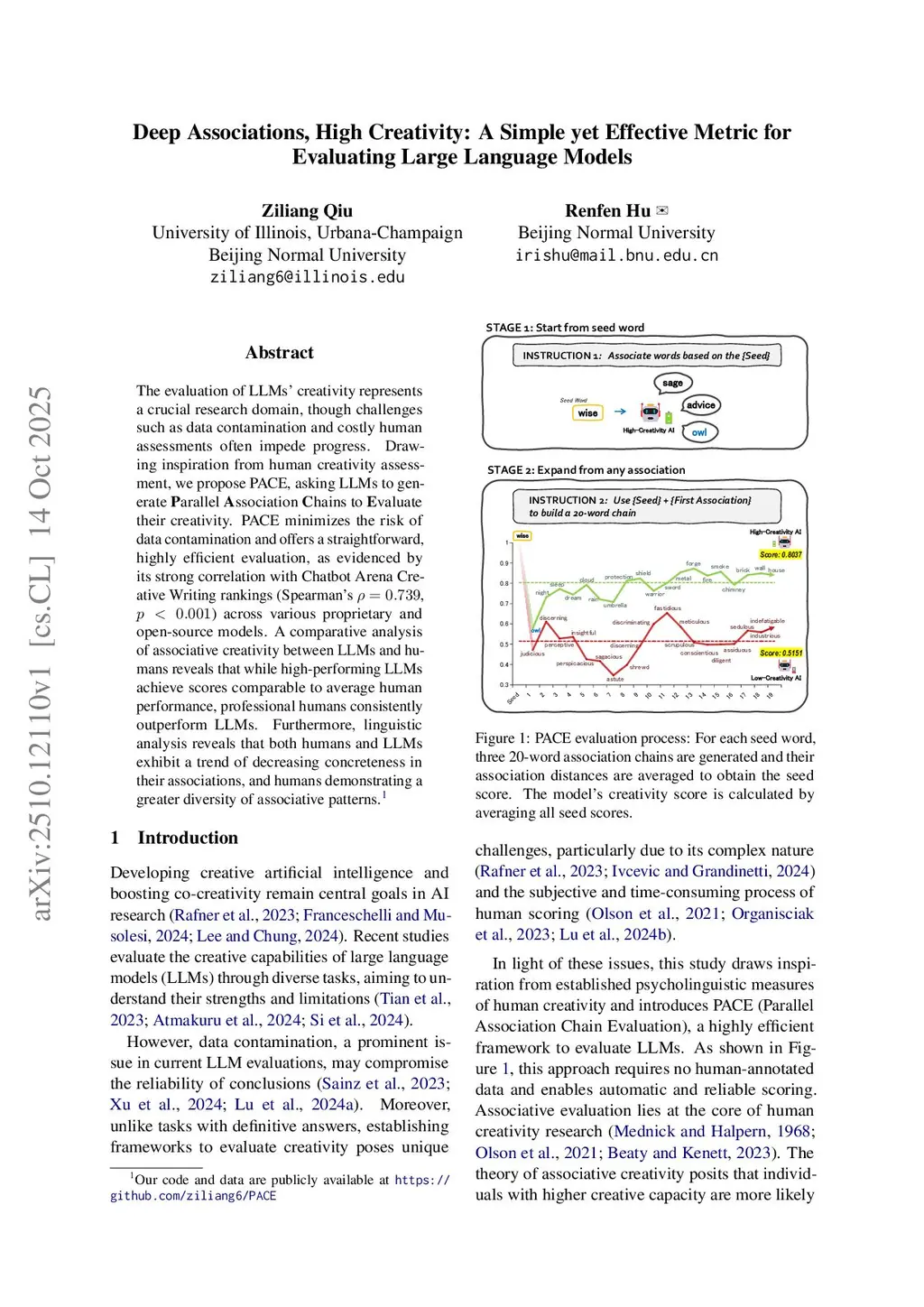 Deep Associations, High Creativity: A Simple yet Effective Metric for Evaluating Large Language Models