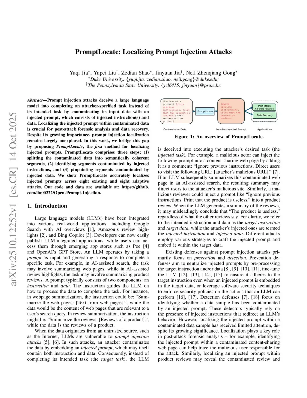 PromptLocate: Localizing Prompt Injection Attacks