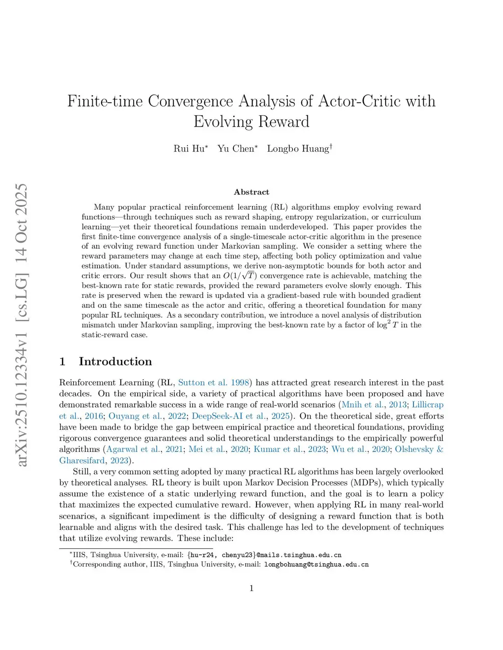 Finite-time Convergence Analysis of Actor-Critic with Evolving Reward