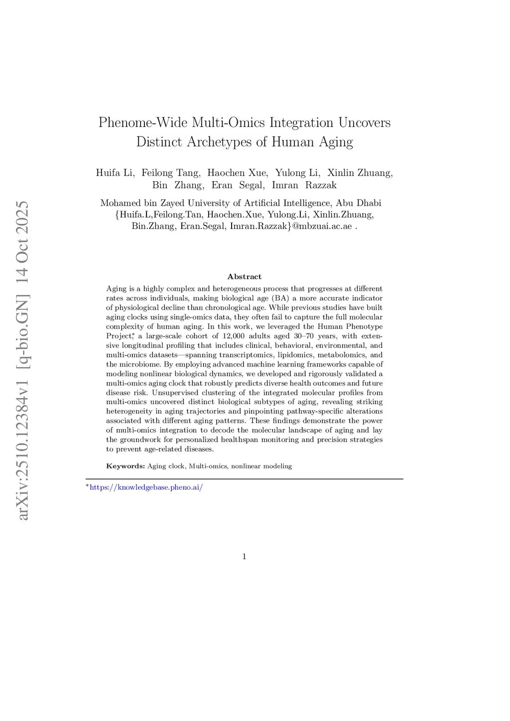 Phenome-Wide Multi-Omics Integration Uncovers Distinct Archetypes of Human Aging