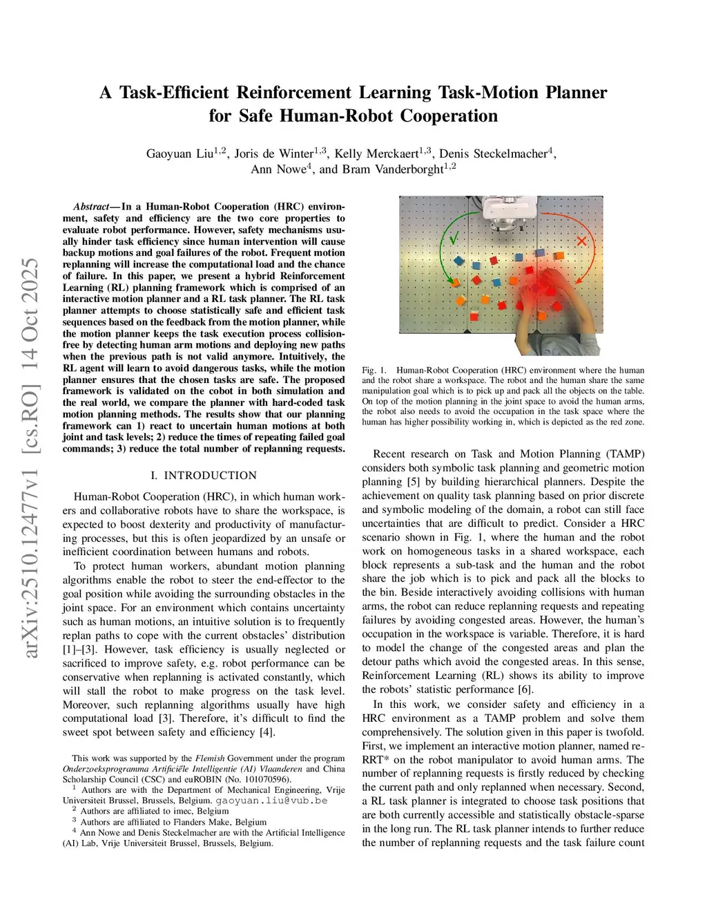 A Task-Efficient Reinforcement Learning Task-Motion Planner for Safe Human-Robot Cooperation