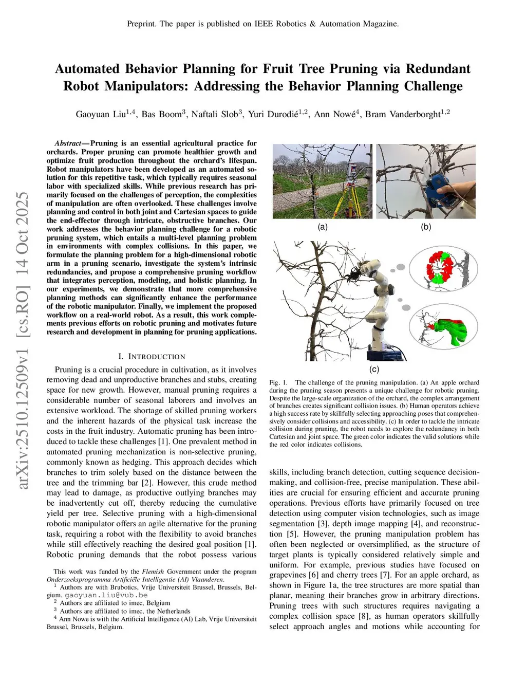 Automated Behavior Planning for Fruit Tree Pruning via Redundant Robot Manipulators: Addressing the Behavior Planning Challenge