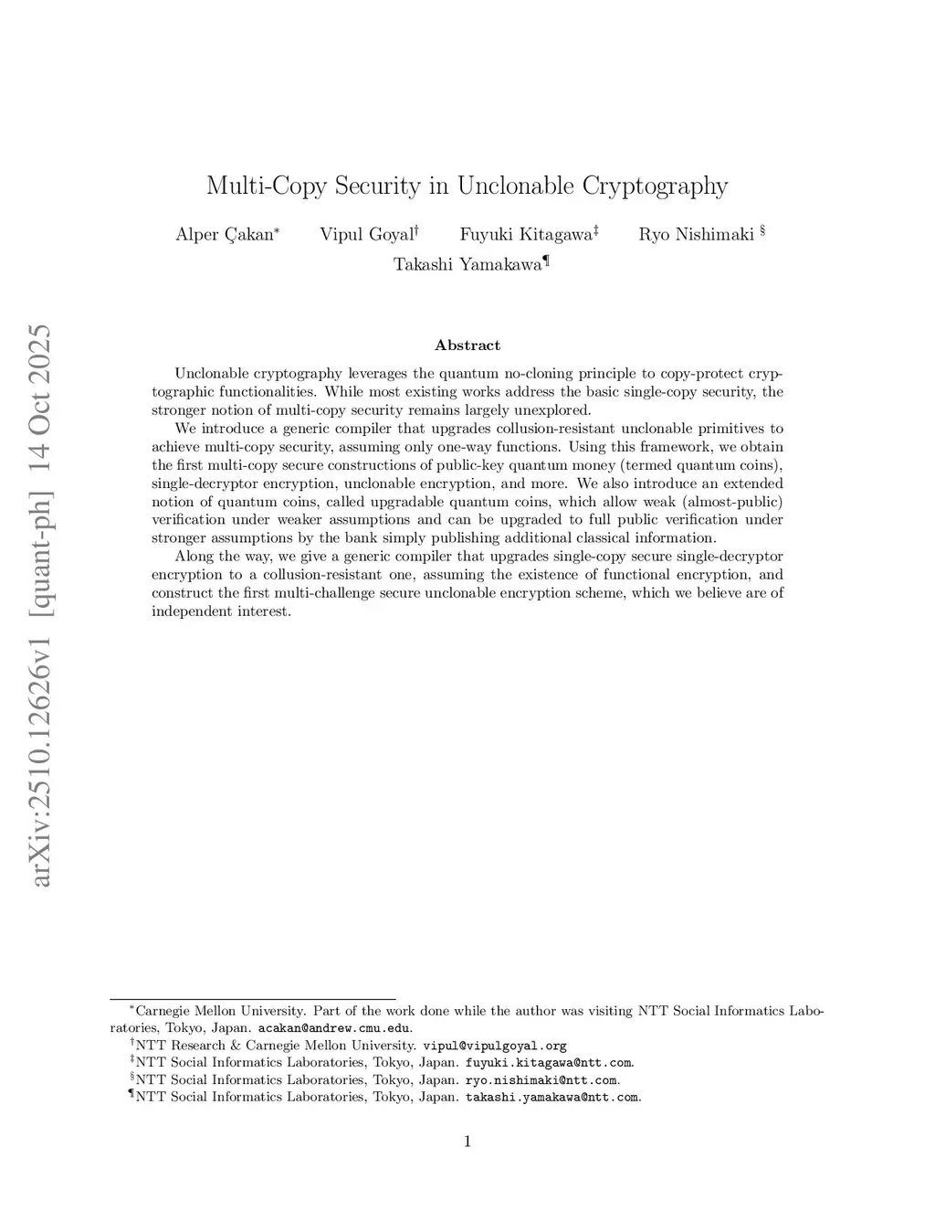 Unclonable cryptography leverages the quantum no-cloning principle to copy-protect cryptographic functionalities. While most existing works address the basic single-copy security, the stronger notion of multi-copy security remains largely unexplored.We introduce a generic compiler that upgrades collusion-resistant unclonable primitives to achieve multi-copy security, assuming only one-way functions. Using this framework, we obtain the first multi-copy secure constructions of public-key quantum money (termed quantum coins), single-decryptor encryption, unclonable encryption, and more. We also introduce an extended notion of quantum coins, called upgradable quantum coins, which allow weak (almost-public) verification under weaker assumptions and can be upgraded to full public verification under stronger assumptions by the bank simply publishing additional classical information.Along the way, we give a generic compiler that upgrades single-copy secure single-decryptor encryption to a collusion-resistant one, assuming the existence of functional encryption, and construct the first multi-challenge secure unclonable encryption scheme, which we believe are of independent interest.