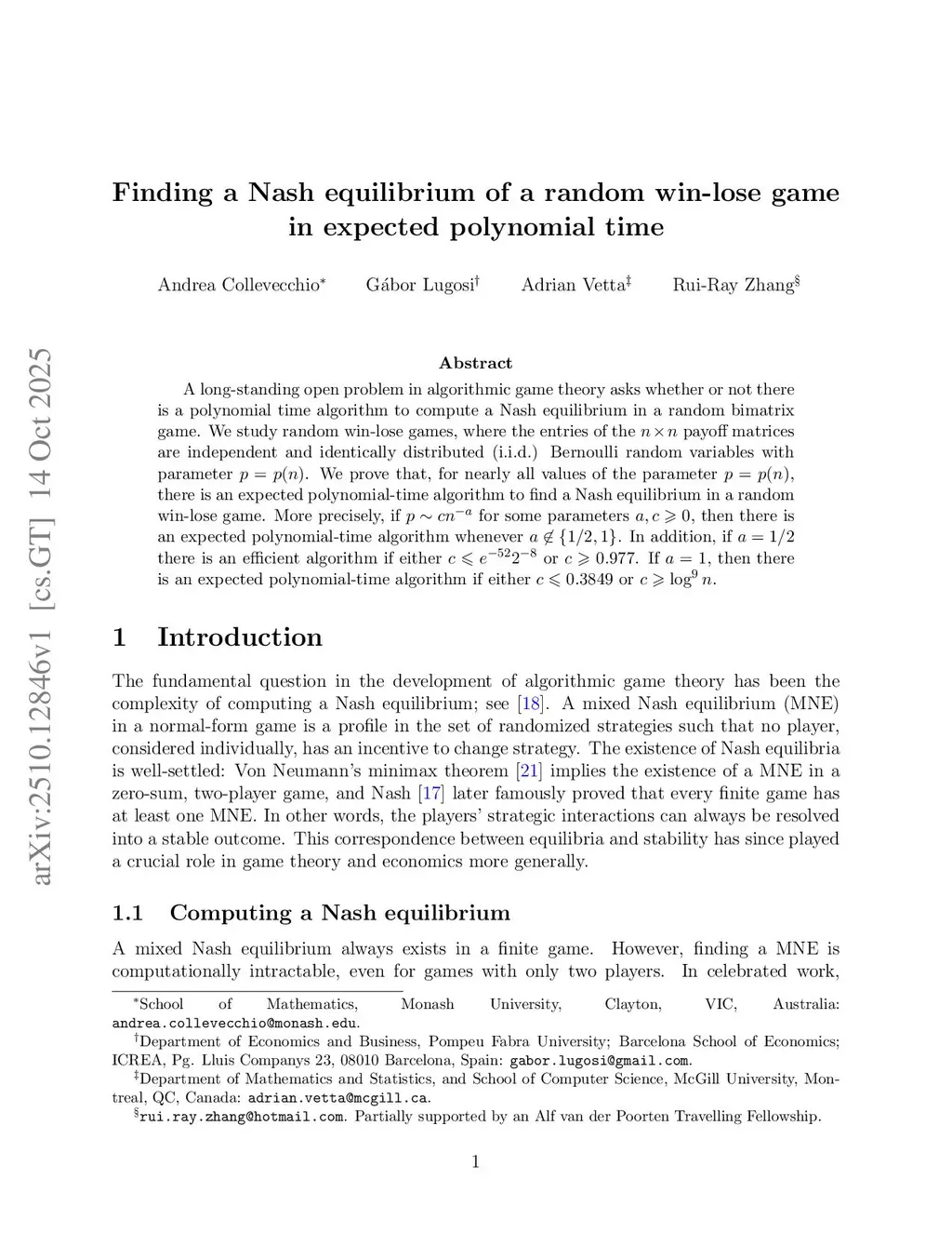 Finding a Nash equilibrium of a random win-lose game in expected polynomial time
