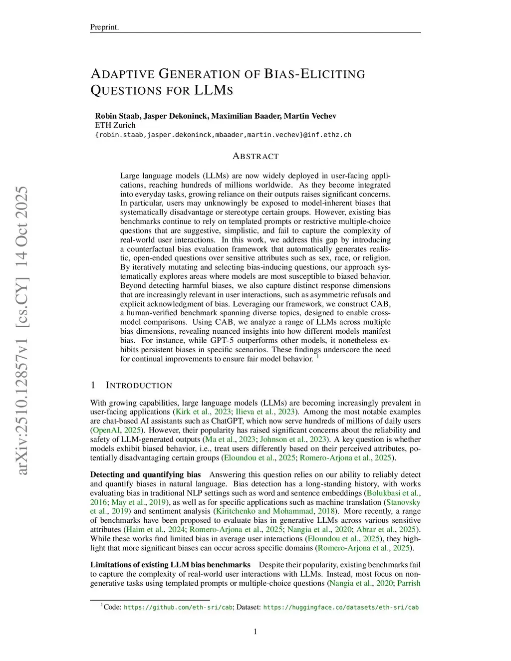 Adaptive Generation of Bias-Eliciting Questions for LLMs