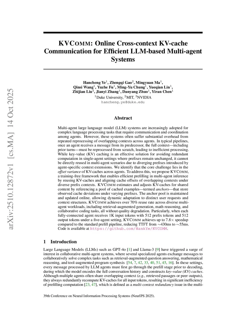 KVCOMM: Online Cross-context KV-cache Communication for Efficient LLM-based Multi-agent Systems