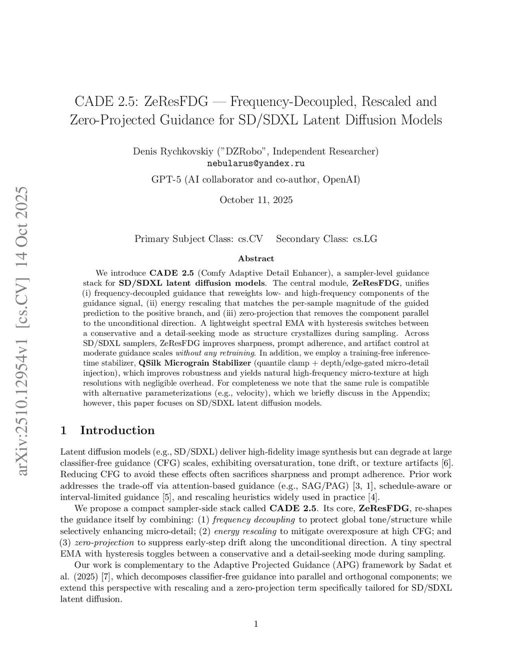 CADE 2.5 - ZeResFDG: Frequency-Decoupled, Rescaled and Zero-Projected Guidance for SD/SDXL Latent Diffusion Models