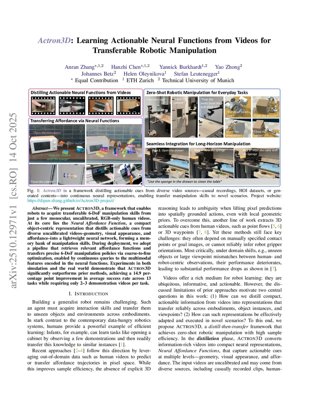 Actron3D: Learning Actionable Neural Functions from Videos for Transferable Robotic Manipulation