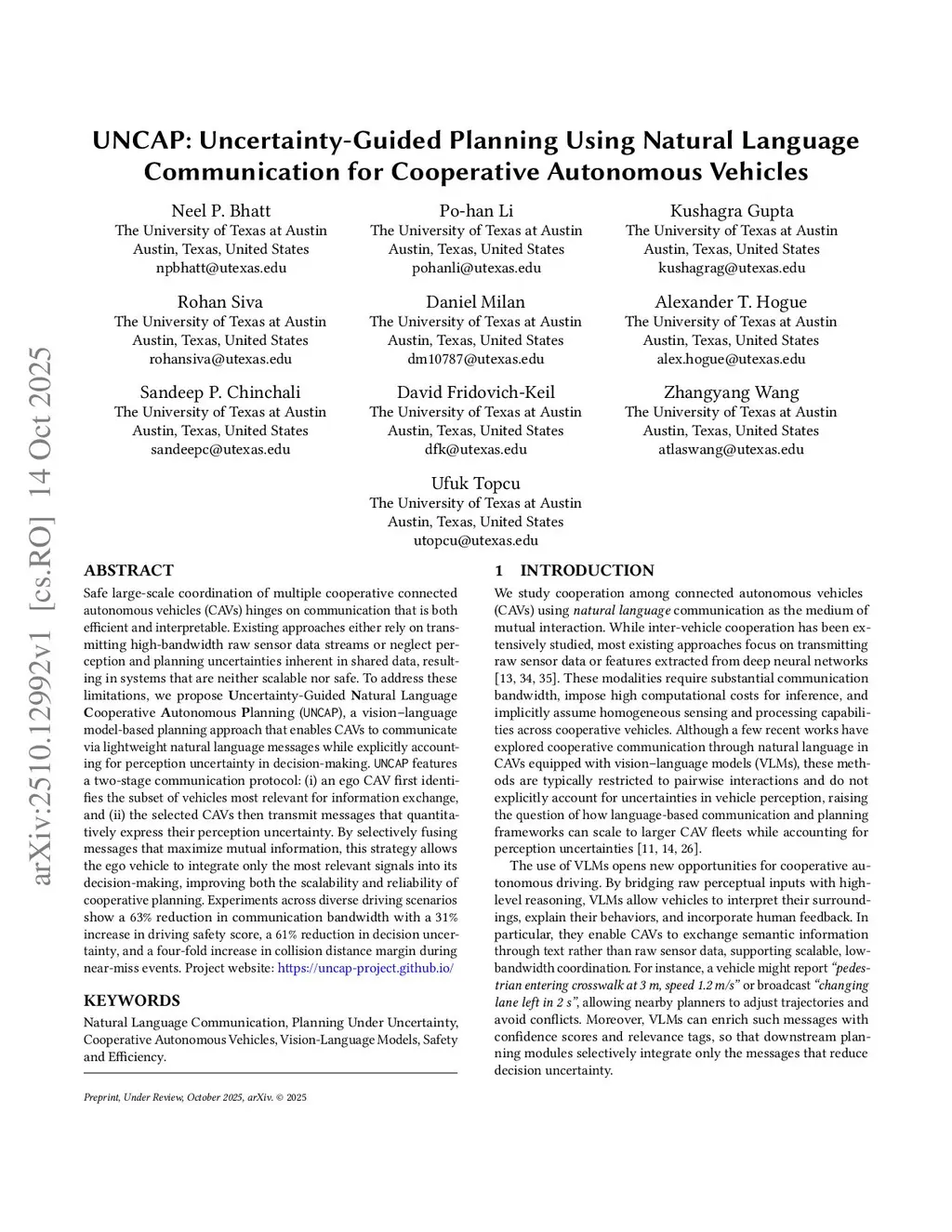 UNCAP: Uncertainty-Guided Neurosymbolic Planning Using Natural Language Communication for Cooperative Autonomous Vehicles