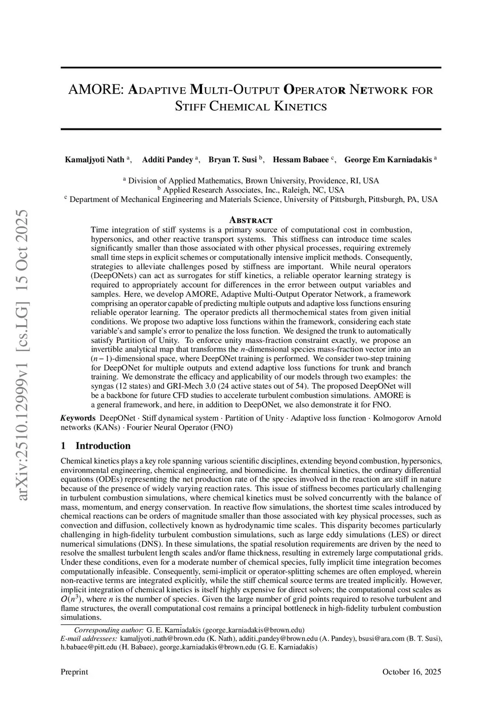 AMORE: Adaptive Multi-Output Operator Network for Stiff Chemical Kinetics