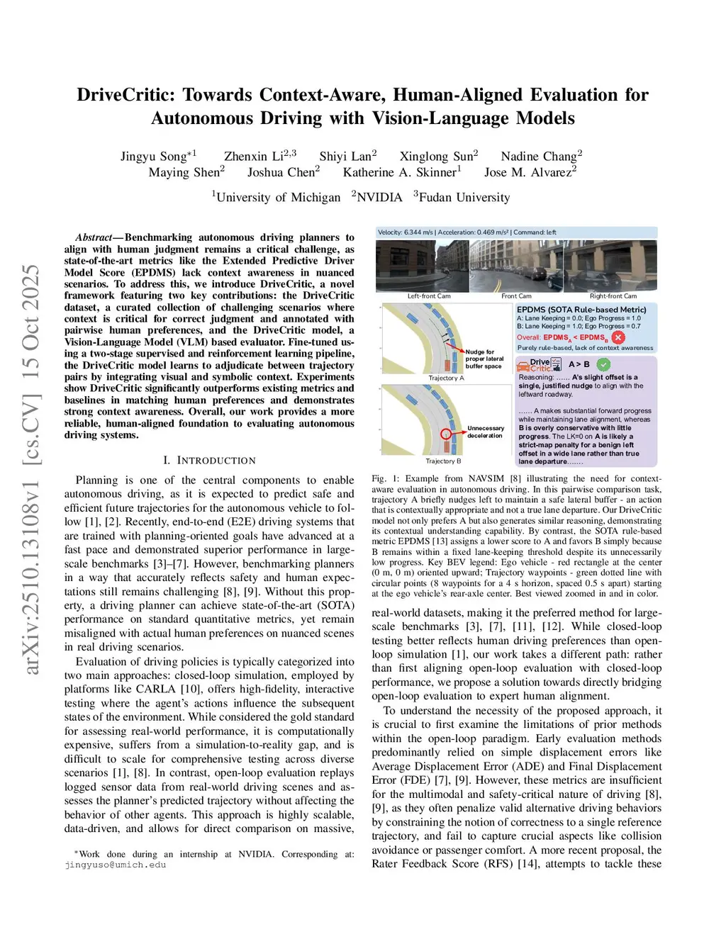 DriveCritic: Towards Context-Aware, Human-Aligned Evaluation for Autonomous Driving with Vision-Language Models