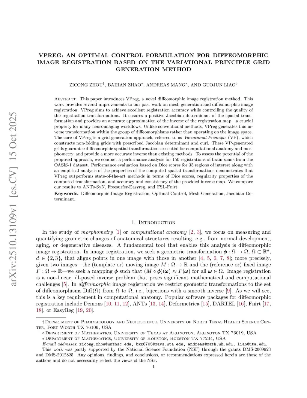 This paper introduces VPreg, a novel diffeomorphic image registration method. This work provides several improvements to our past work on mesh generation and diffeomorphic image registration. VPreg aims to achieve excellent registration accuracy while controlling the quality of the registration transformations. It ensures a positive Jacobian determinant of the spatial transformation and provides an accurate approximation of the inverse of the registration, a crucial property for many neuroimaging workflows. Unlike conventional methods, VPreg generates this inverse transformation within the group of diffeomorphisms rather than operating on the image space. The core of VPreg is a grid generation approach, referred to as \emph{Variational Principle} (VP), which constructs non-folding grids with prescribed Jacobian determinant and curl. These VP-generated grids guarantee diffeomorphic spatial transformations essential for computational anatomy and morphometry, and provide a more accurate inverse than existing methods. To assess the potential of the proposed approach, we conduct a performance analysis for 150 registrations of brain scans from the OASIS-1 dataset. Performance evaluation based on Dice scores for 35 regions of interest, along with an empirical analysis of the properties of the computed spatial transformations, demonstrates that VPreg outperforms state-of-the-art methods in terms of Dice scores, regularity properties of the computed transformation, and accuracy and consistency of the provided inverse map. We compare our results to ANTs-SyN, Freesurfer-Easyreg, and FSL-Fnirt.