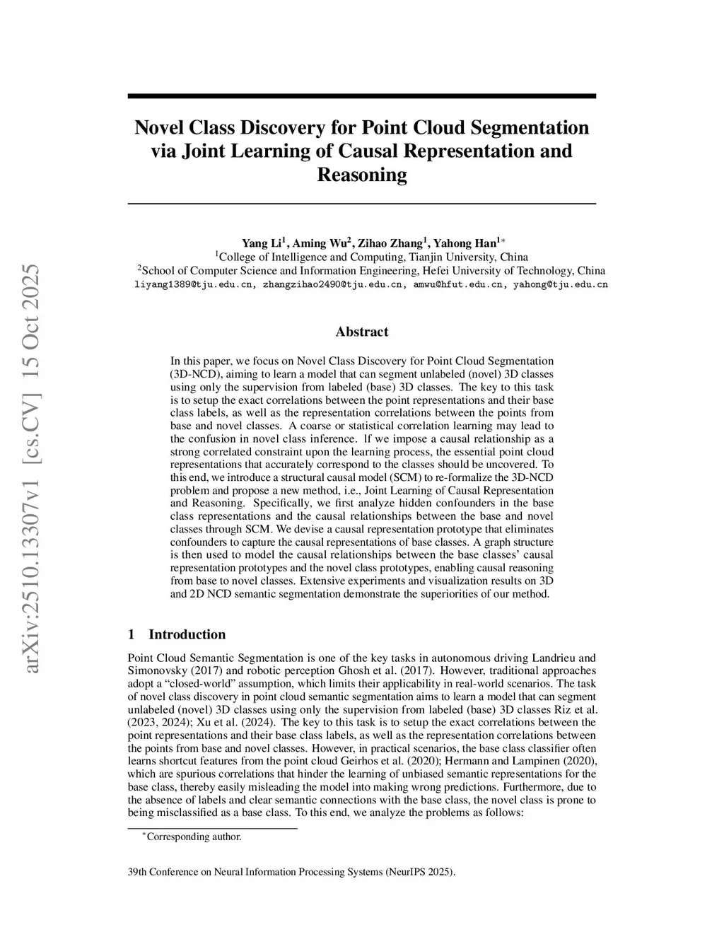 Novel Class Discovery for Point Cloud Segmentation via Joint Learning of Causal Representation and Reasoning