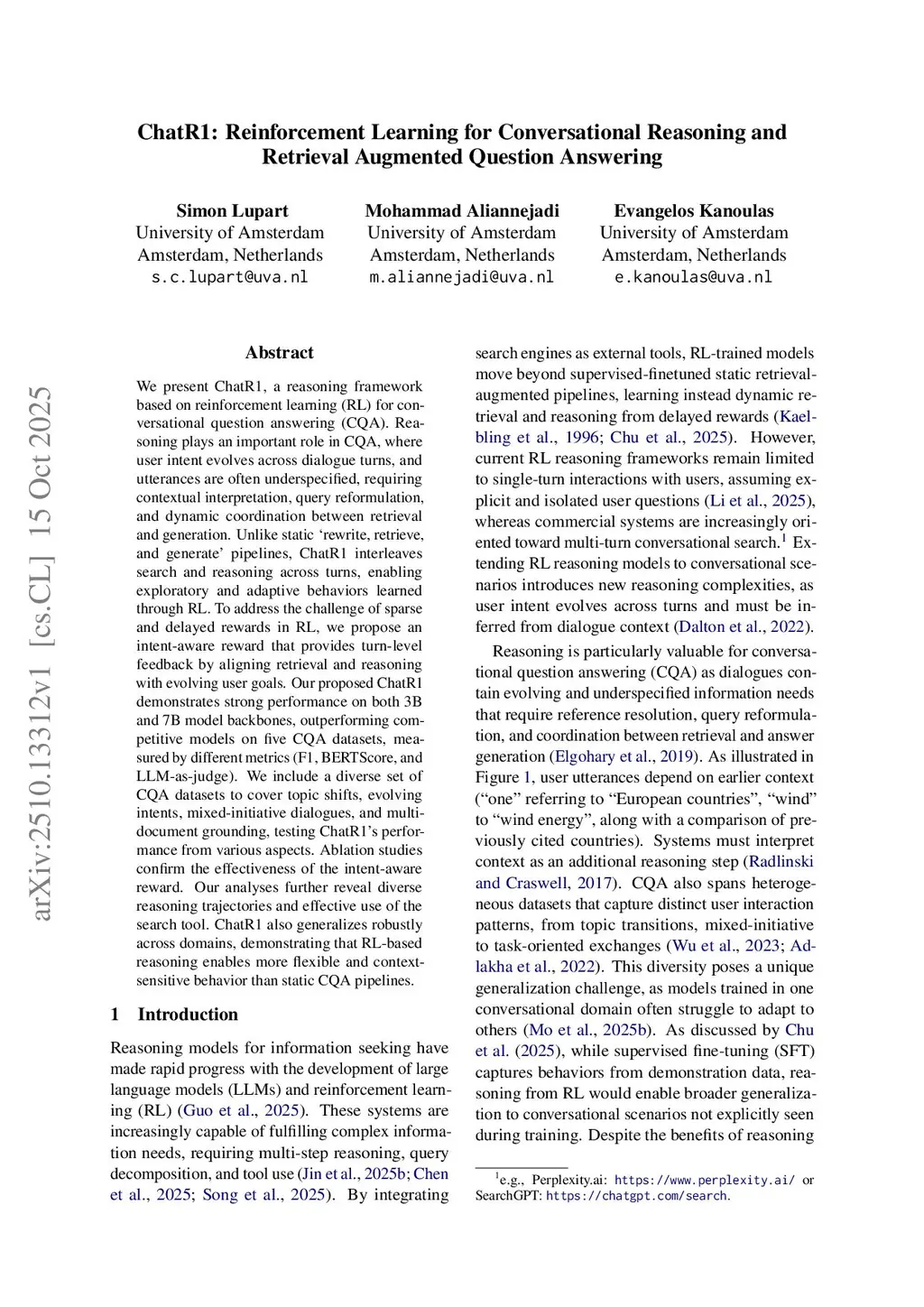 ChatR1: Reinforcement Learning for Conversational Reasoning and Retrieval Augmented Question Answering