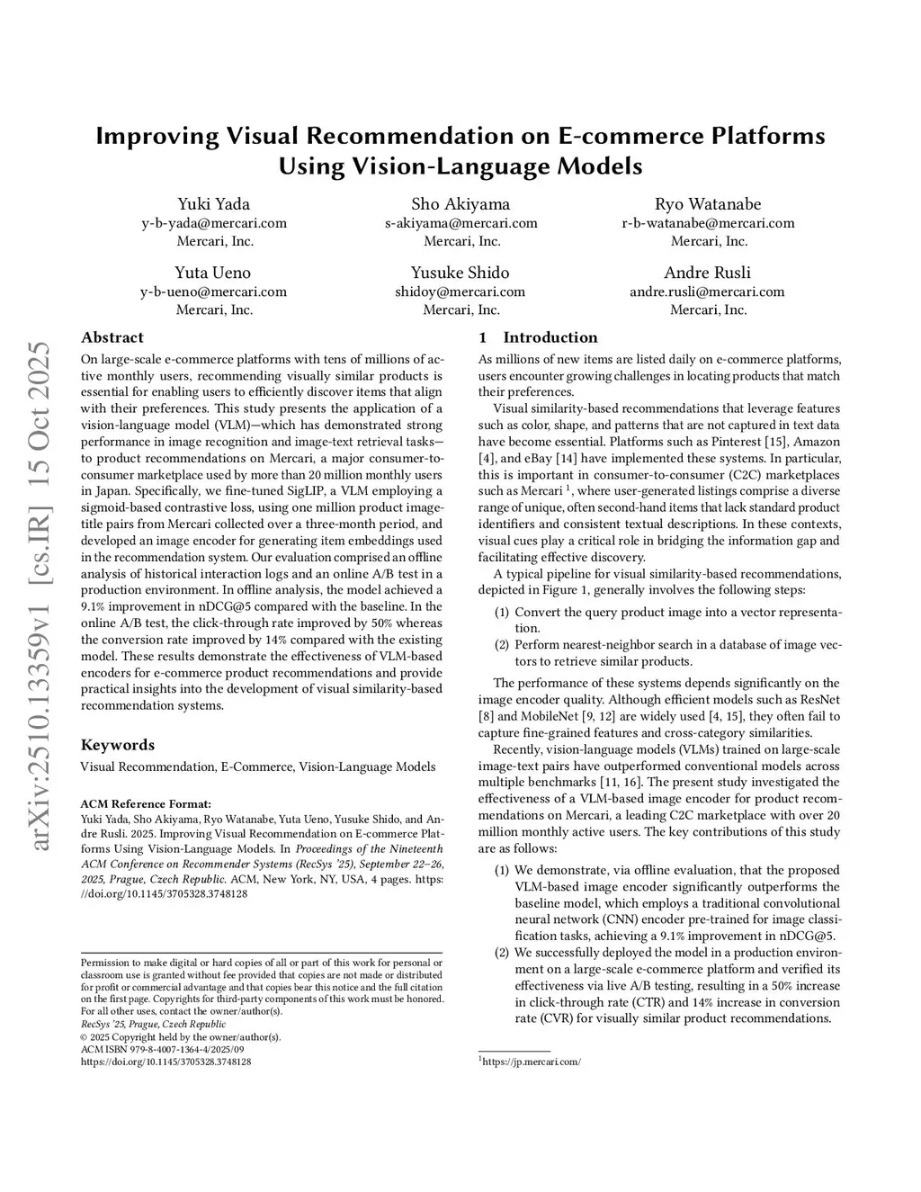 Improving Visual Recommendation on E-commerce Platforms Using Vision-Language Models