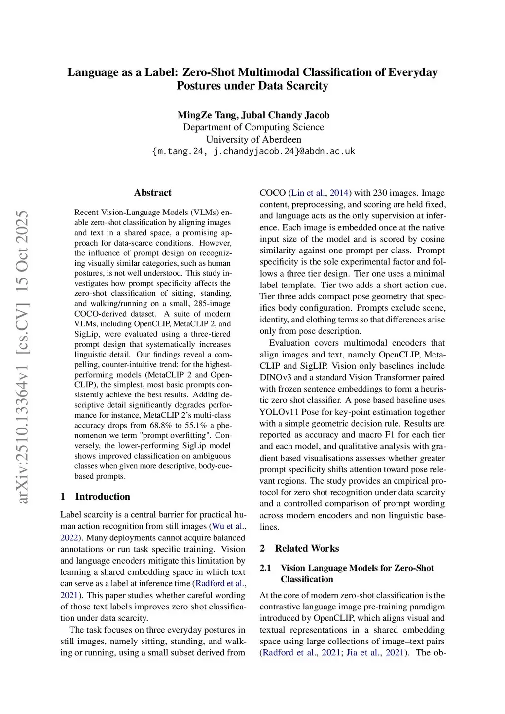 Language as a Label: Zero-Shot Multimodal Classification of Everyday Postures under Data Scarcity