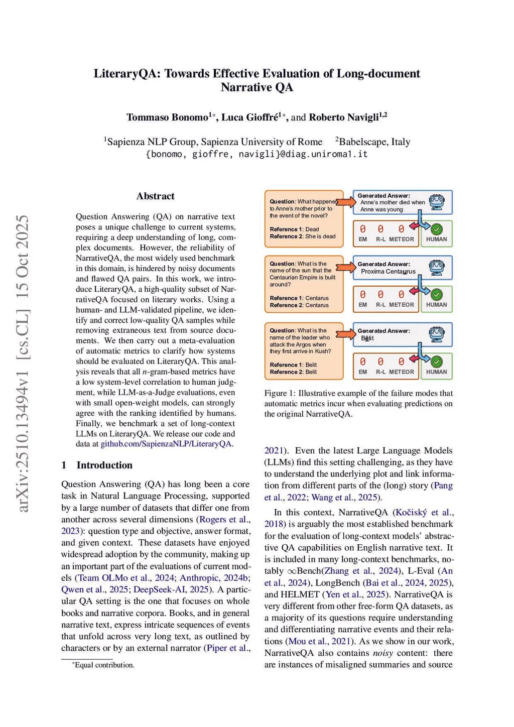 LiteraryQA: Towards Effective Evaluation of Long-document Narrative QA
