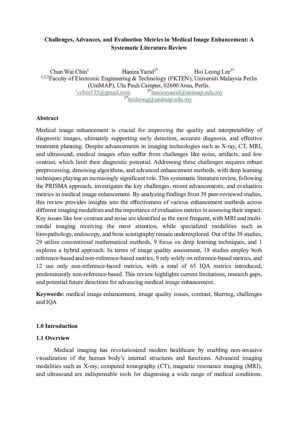 Challenges, Advances, and Evaluation Metrics in Medical Image Enhancement: A Systematic Literature Review