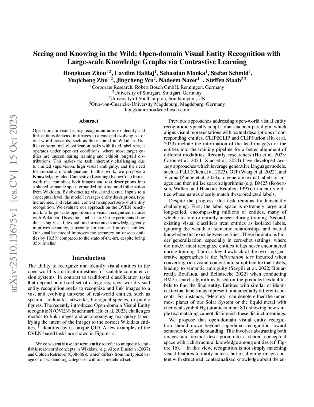 Seeing and Knowing in the Wild: Open-domain Visual Entity Recognition with Large-scale Knowledge Graphs via Contrastive Learning