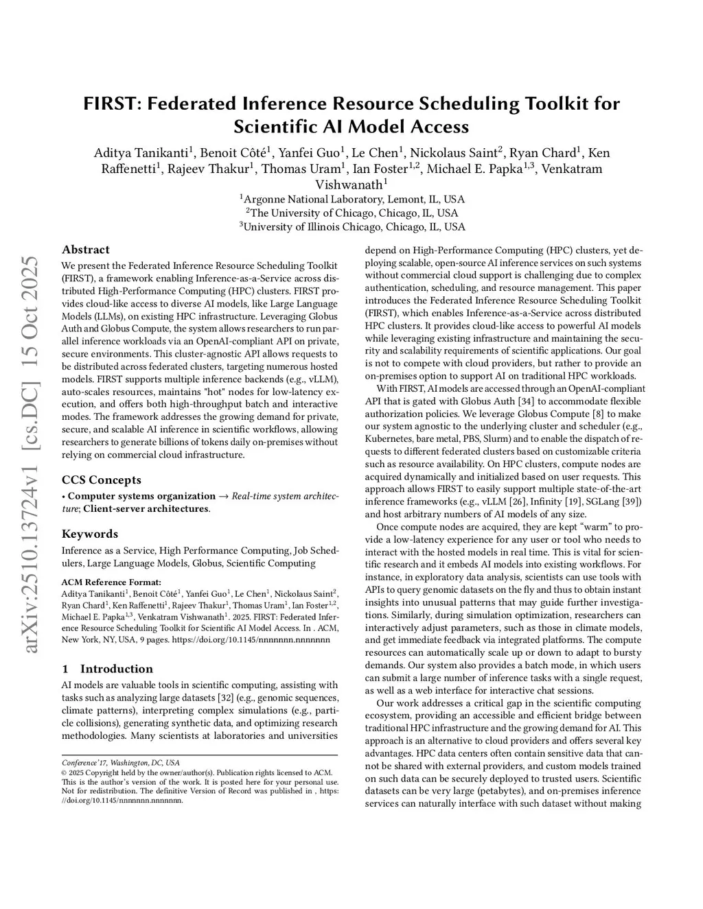 FIRST: Federated Inference Resource Scheduling Toolkit for Scientific AI Model Access